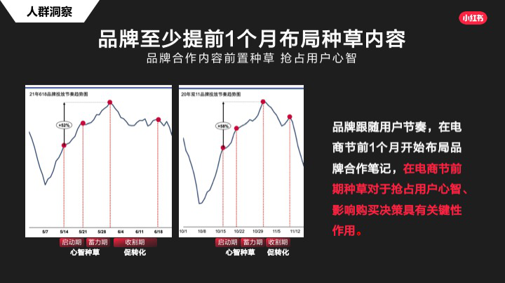 可以看出,要占领用户心智,提前做好铺垫是必不可少的环节,尤其是在内容种草和流量推广上需要进行提前布局。而内容种草要比流量推广更加前置。通过数据可以看出,双11至少需要提前1个月做内容布局。也就是十一假期之后,整个内容种草、品牌合作笔记量将开始猛增。